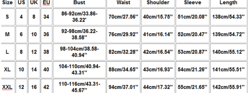 2. Please check the size chart carefully before you buy the item, if you don't know how to choose size, please contact our customer service.